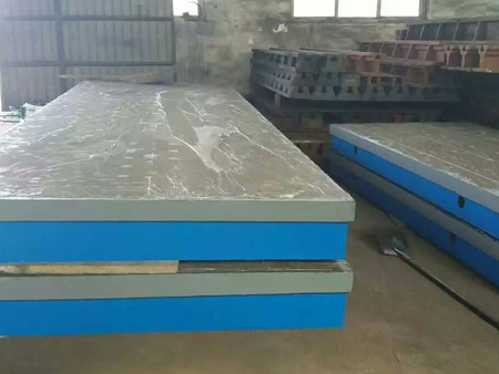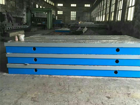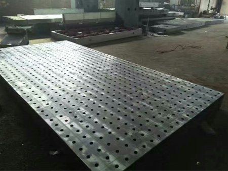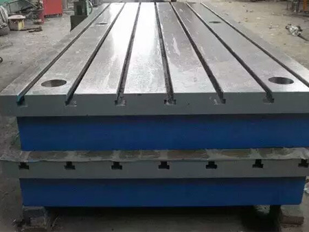 鑄鐵平臺,外觀基本上是箱體式,工作面有長方形、正方形、圓形等,材料為HT200-300,QT400-600,采用刮研工藝,工作面上可加工V形、T形、U形槽、燕尾槽、圓孔、長孔等,是用于工件、設備檢測、劃線、裝配、焊接、組裝、鉚焊的平面基準量具。